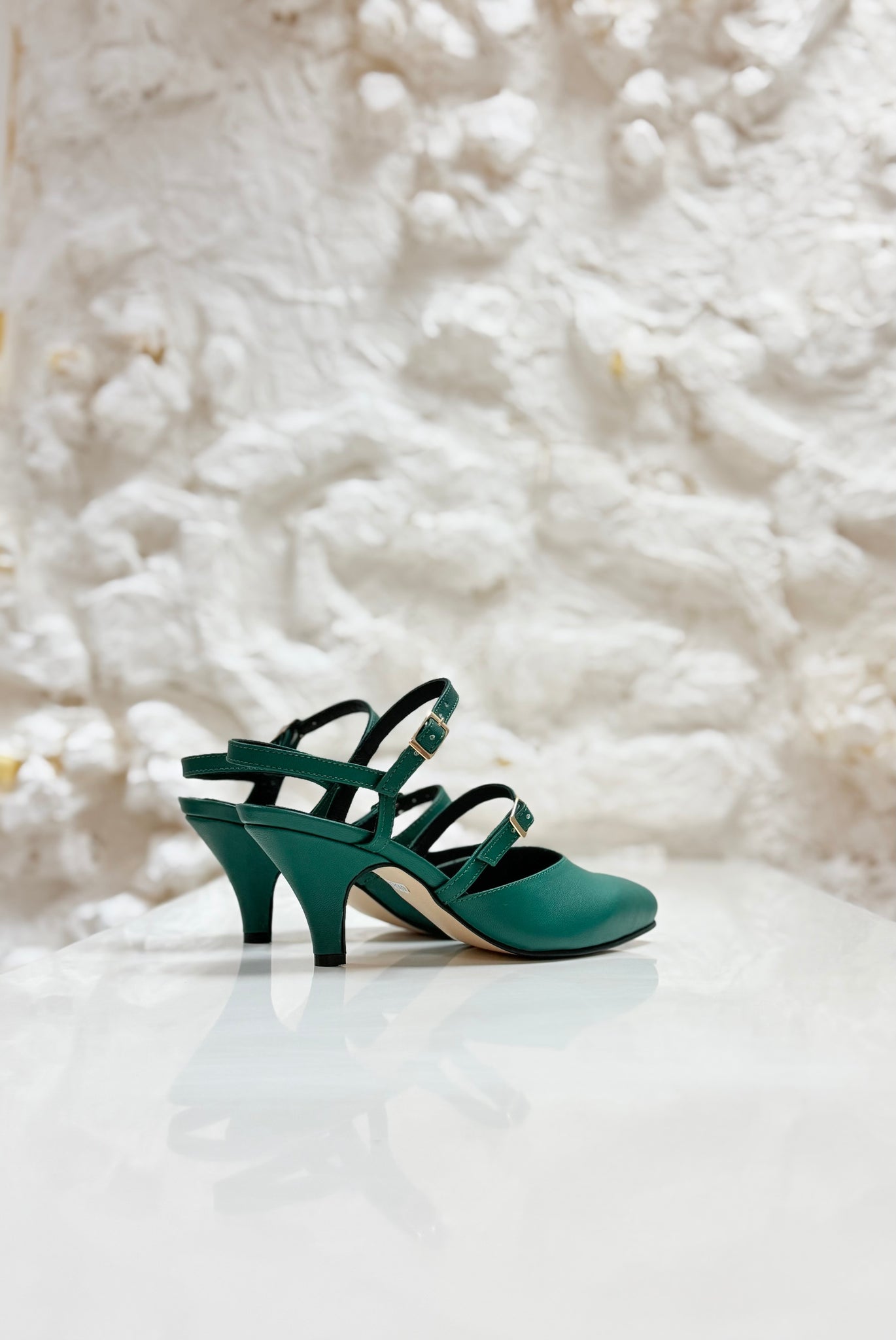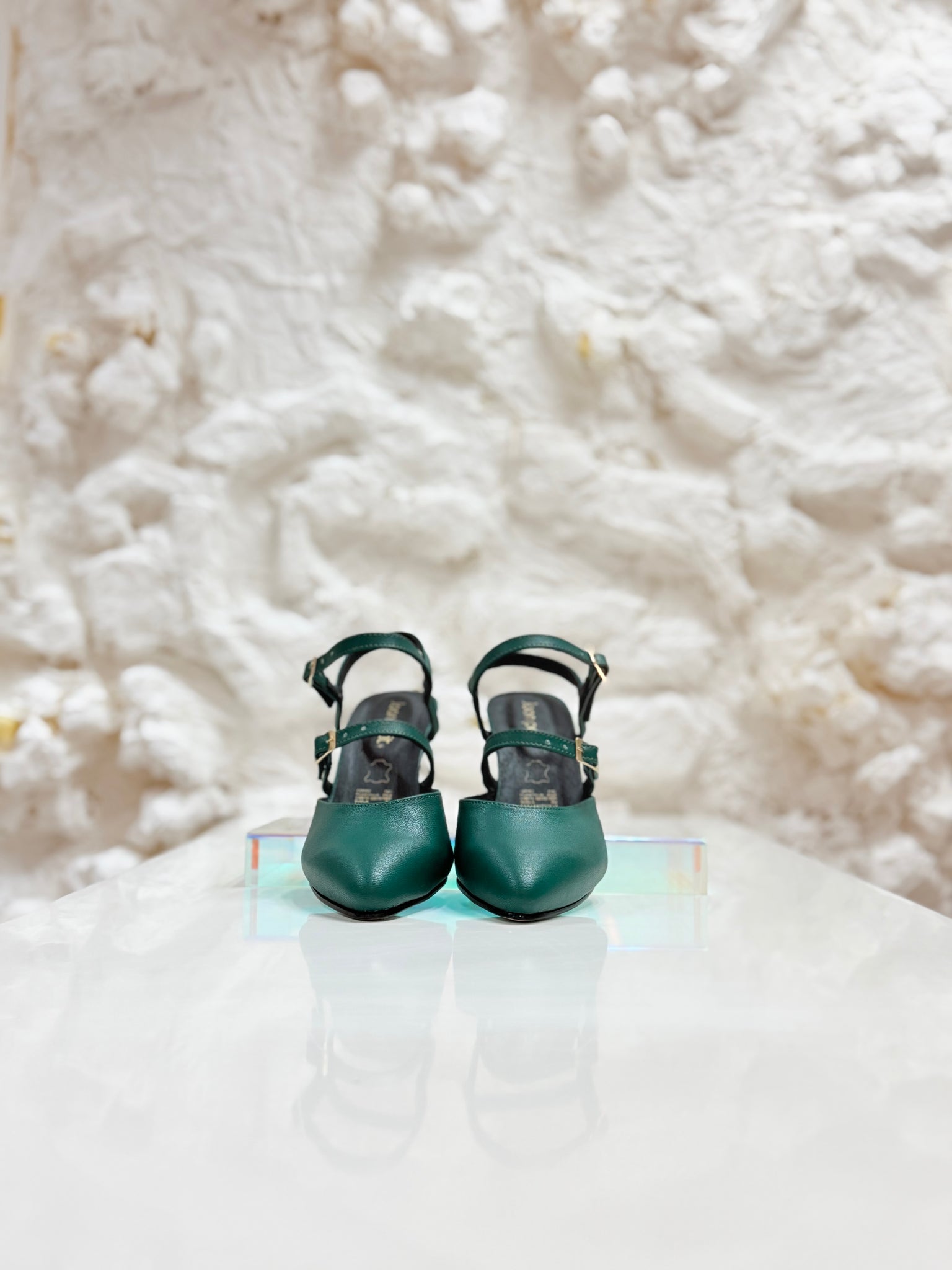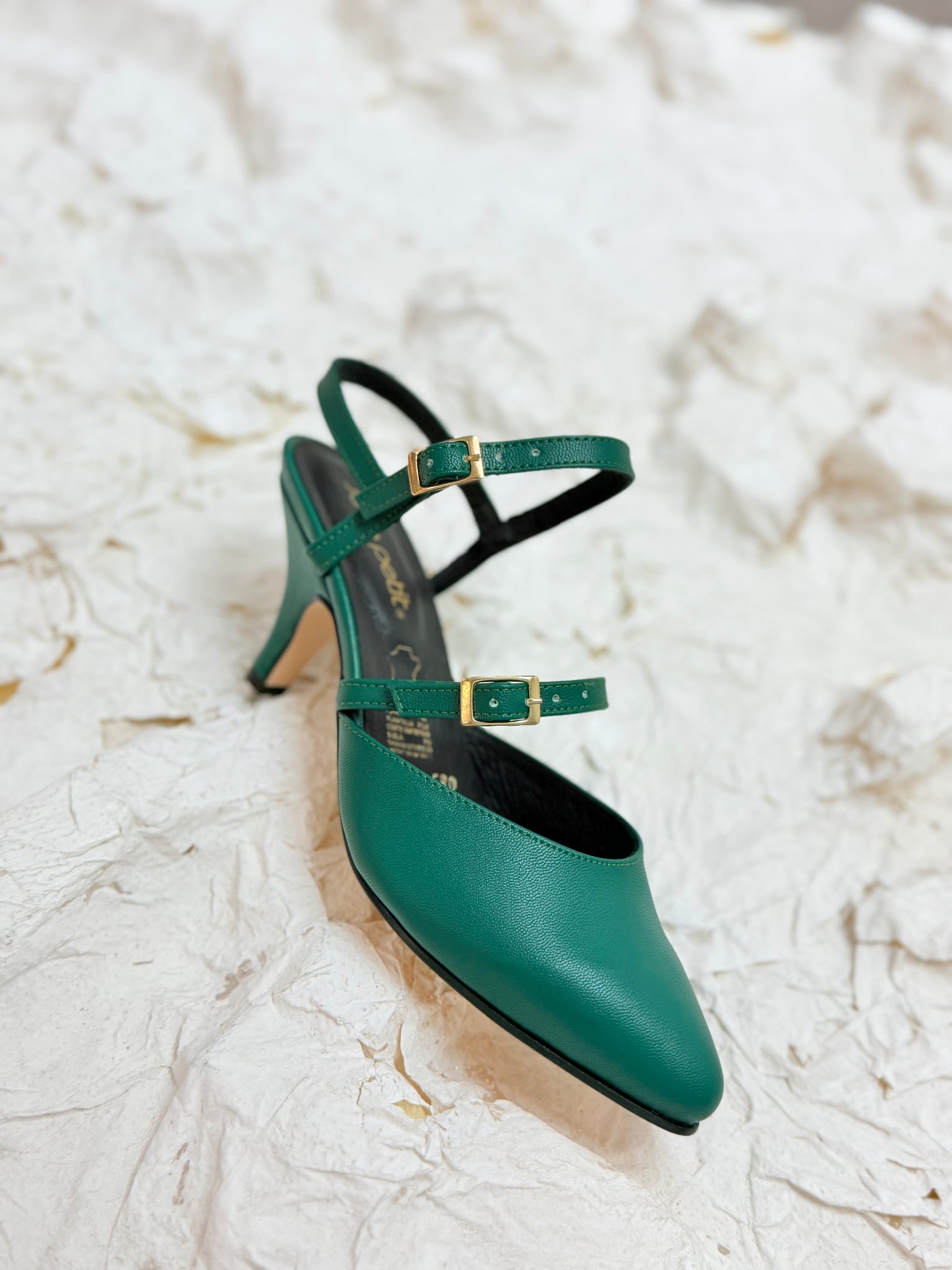 Zapatilla puntal, destalonada con doble pulsera. Disponible en tres tonos: