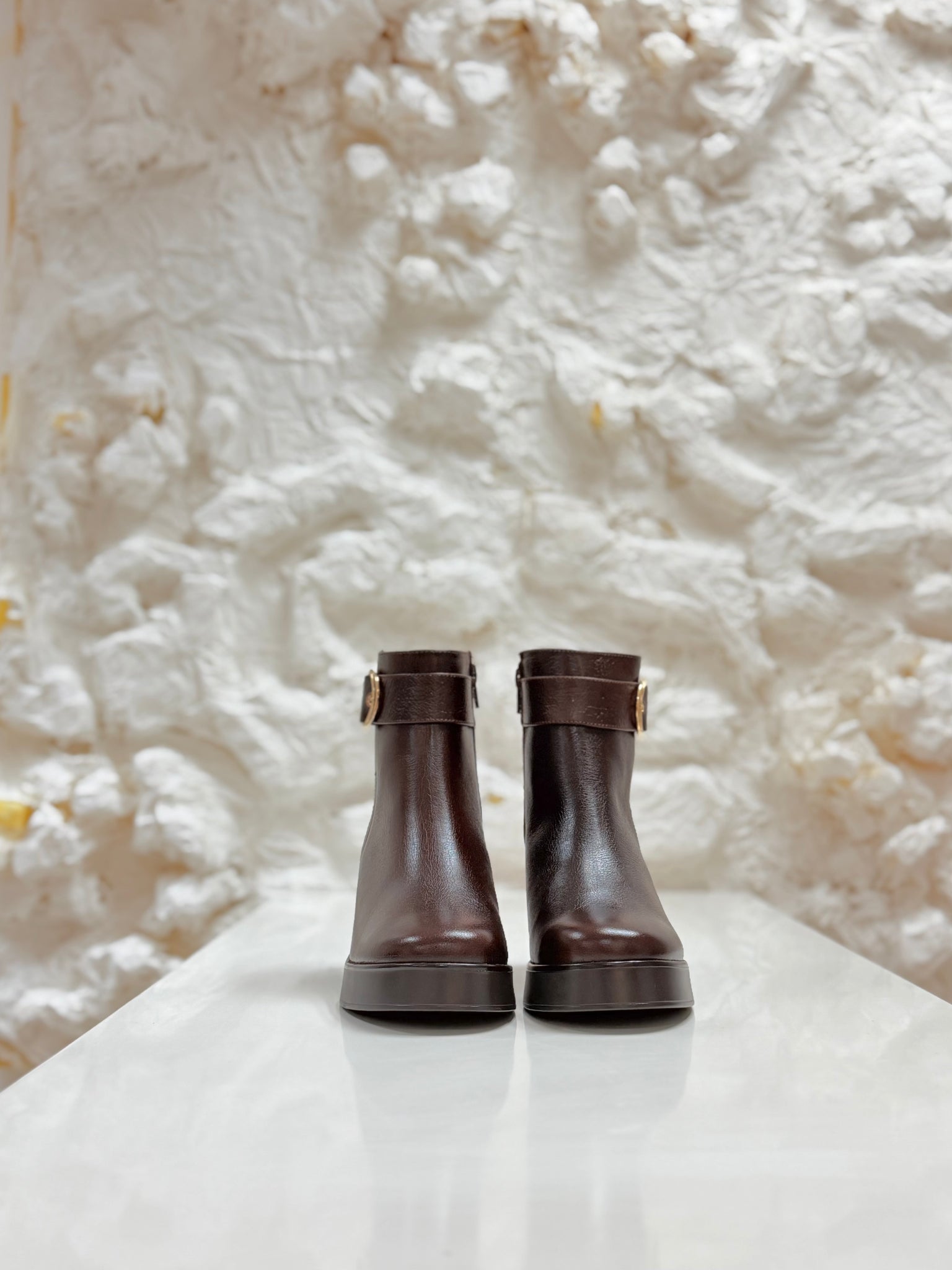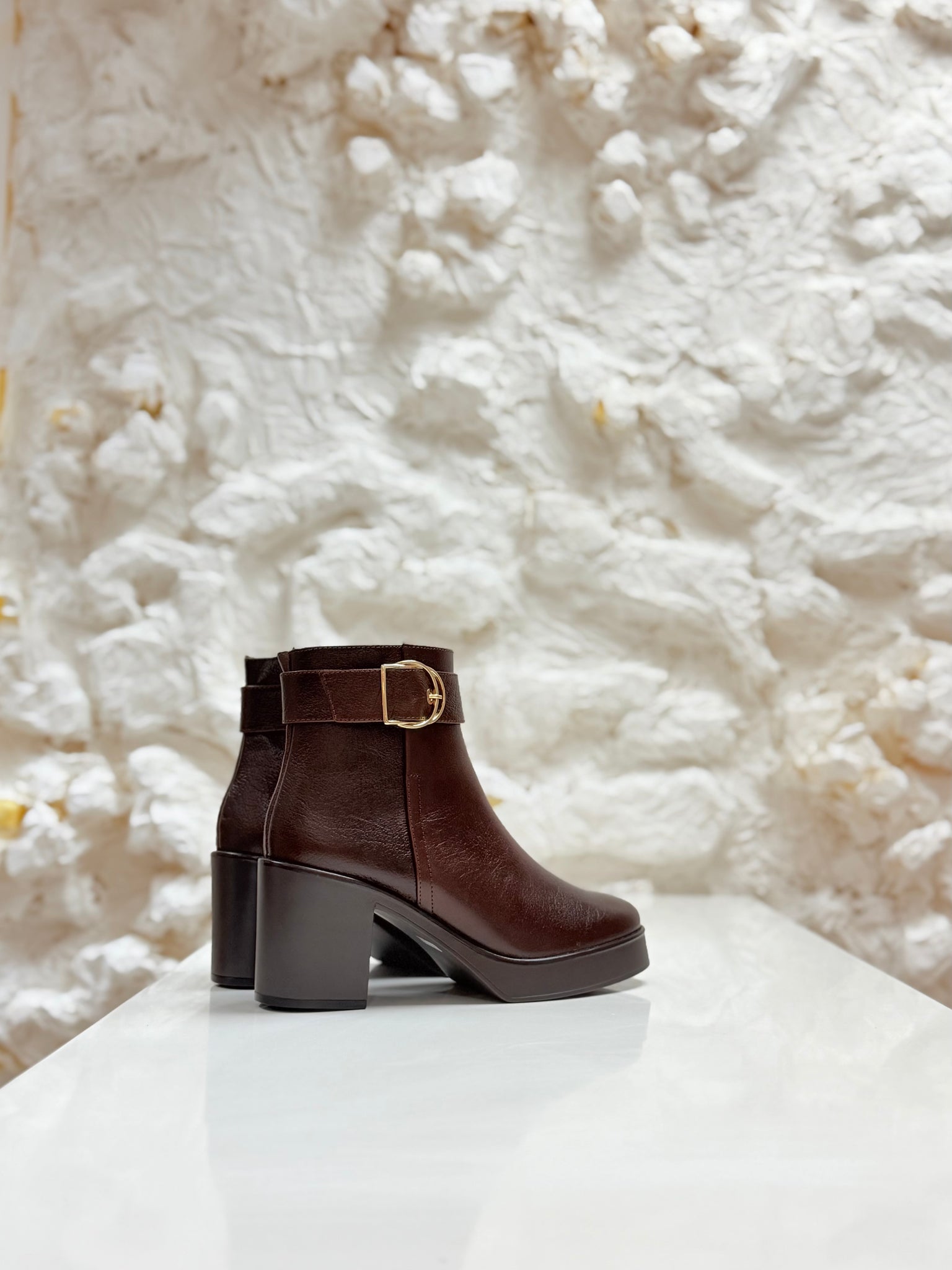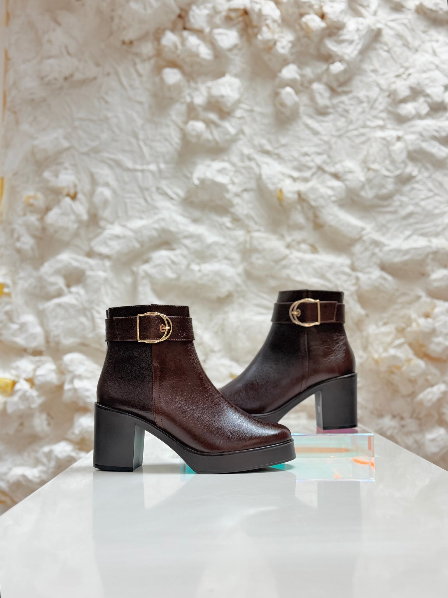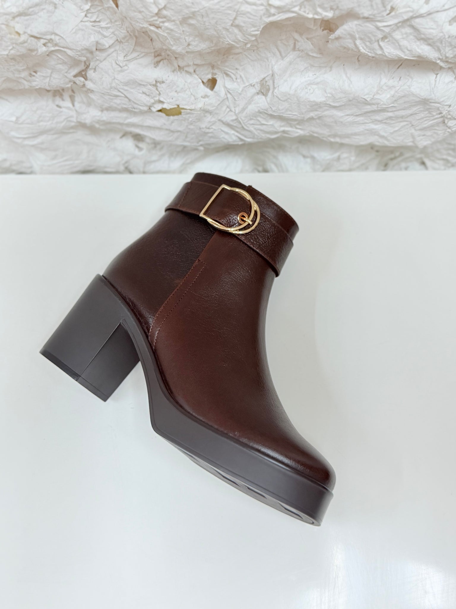 Botines en piel con plataforma y hebilla.